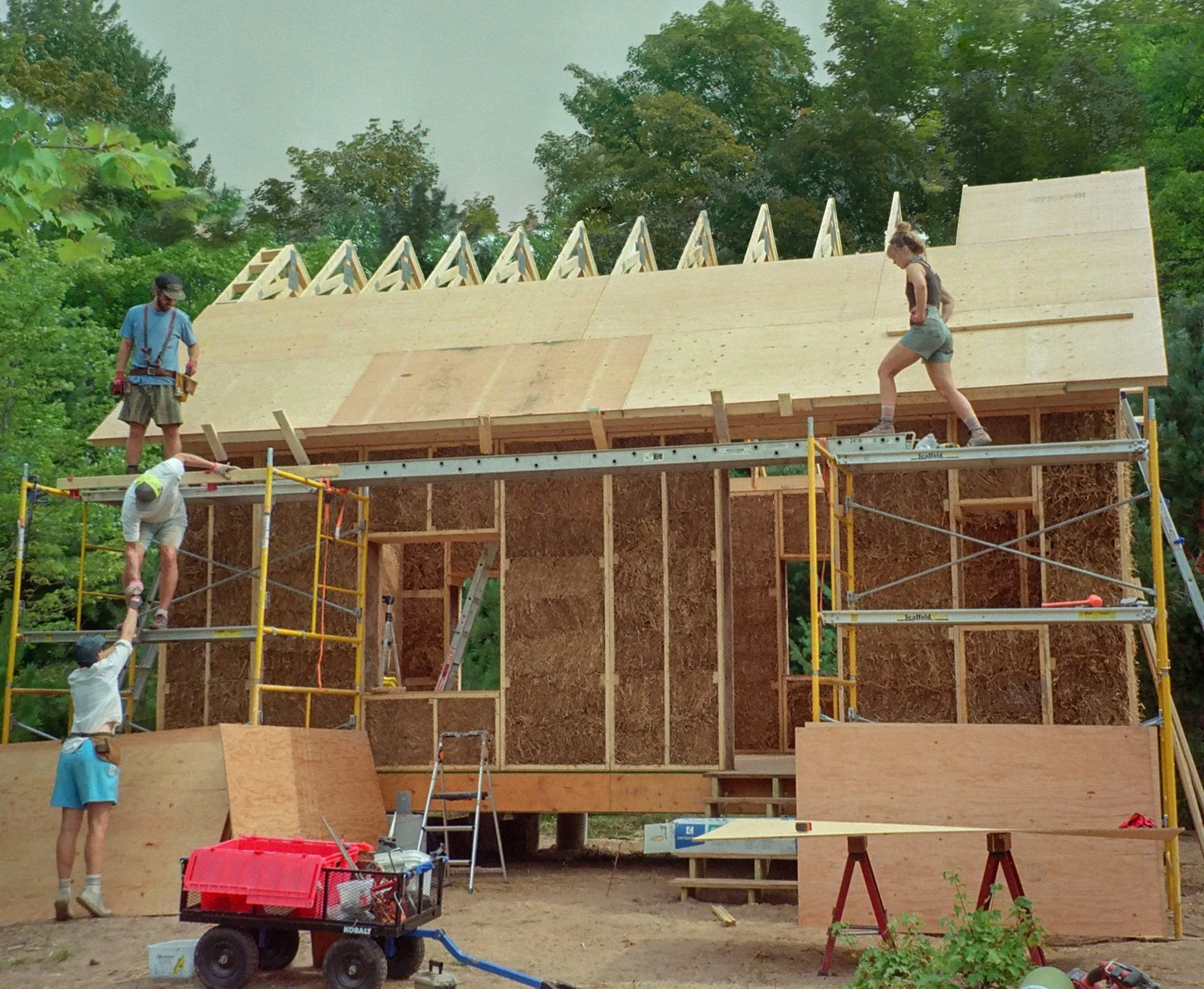 Straw SIPs, Structural Insulated Panels, are made from compressed agricultural by-products and offer strong insulation, low embodied carbon, and non-toxic interior environments. As a building system, they address intersecting climate and housing challenges while supporting regional material supply chains and new forms of rural and creative infrastructure.