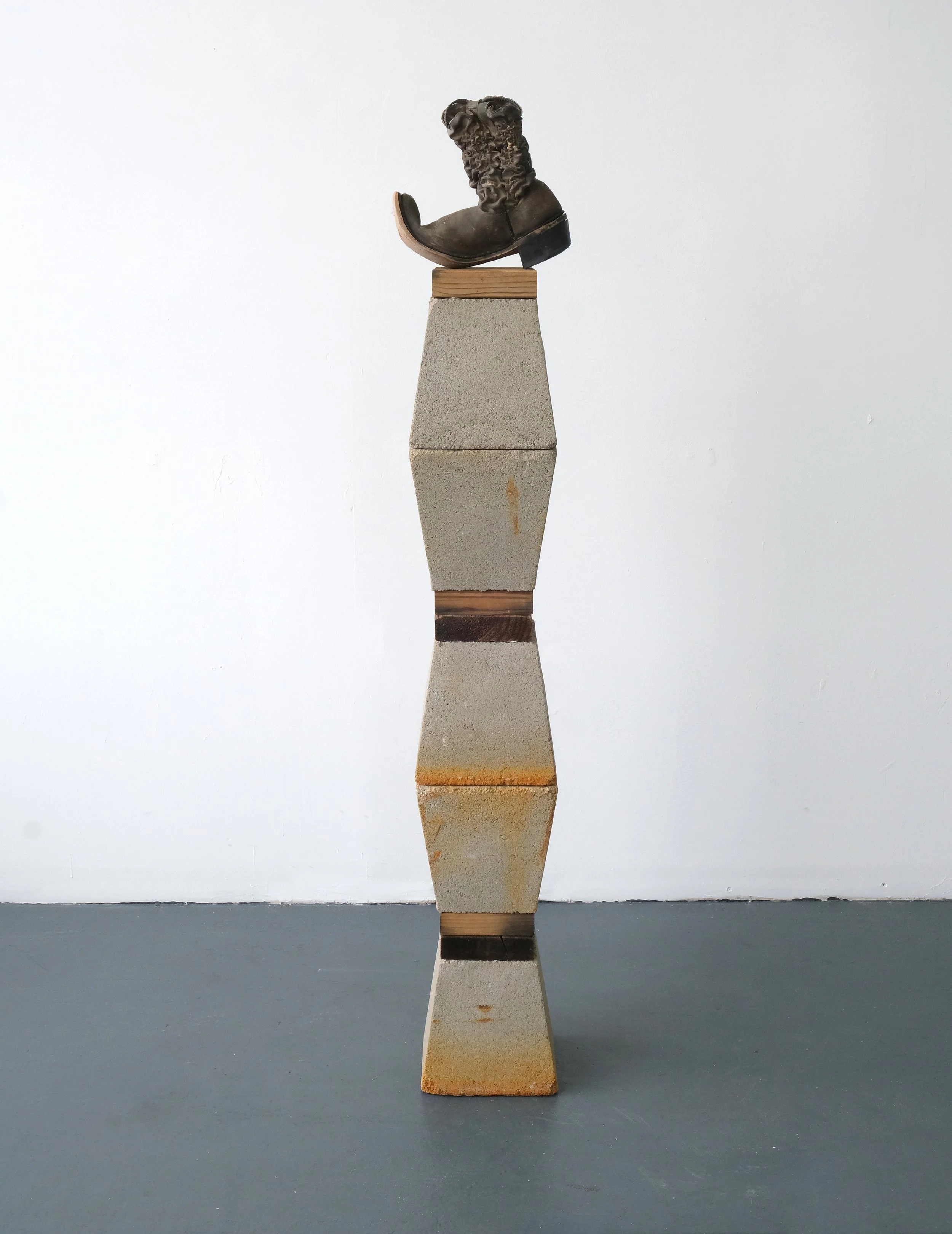 Found Boot, Rust Patina on Wood & Concrete Blocks